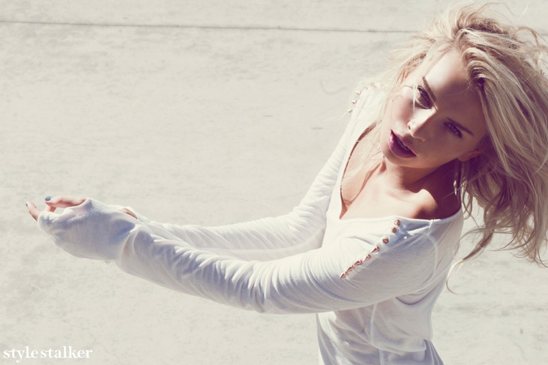 "The concrete bowl of a skate park gives a visual clue as to the L.A-feel of Stylestalker’s latest collection. From an oversized tank emblazoned with a peace sign – something the ’90s might well have felt at home in originally – to dreamy pleated white skirts that somehow marry Marilyn with skater-grunge, it’s all fare that fits the brand’s effortless-meets-sexy trademark image. Look out for metallic silver skirts and the surprise addition of a mandarin-collared oriental-inspired dress – pieces that feel fresh and simultaneously futurist yet vintage." -Stylestalker